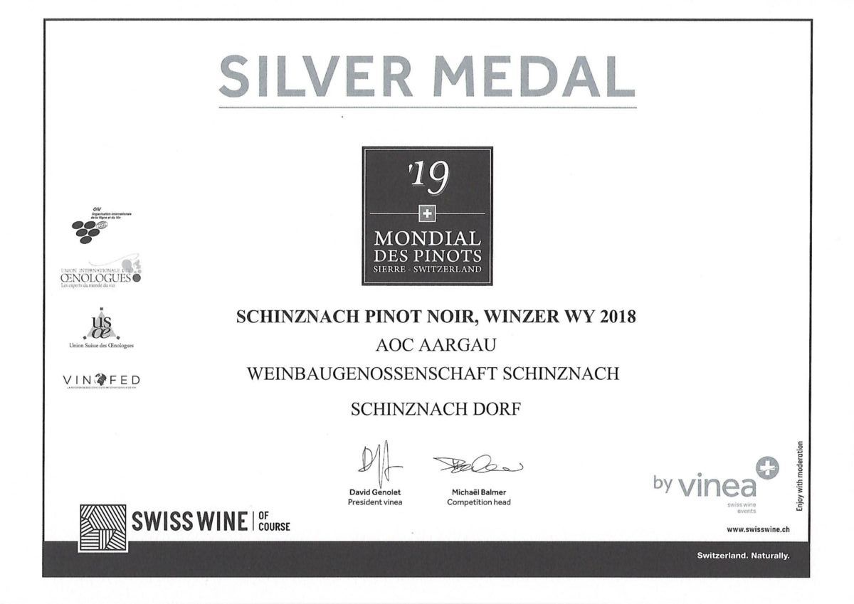 Mondial des Pinots, Sierre / Schinznacher Pinot Noir Winzer-Wy 2018 AOC Aargau
