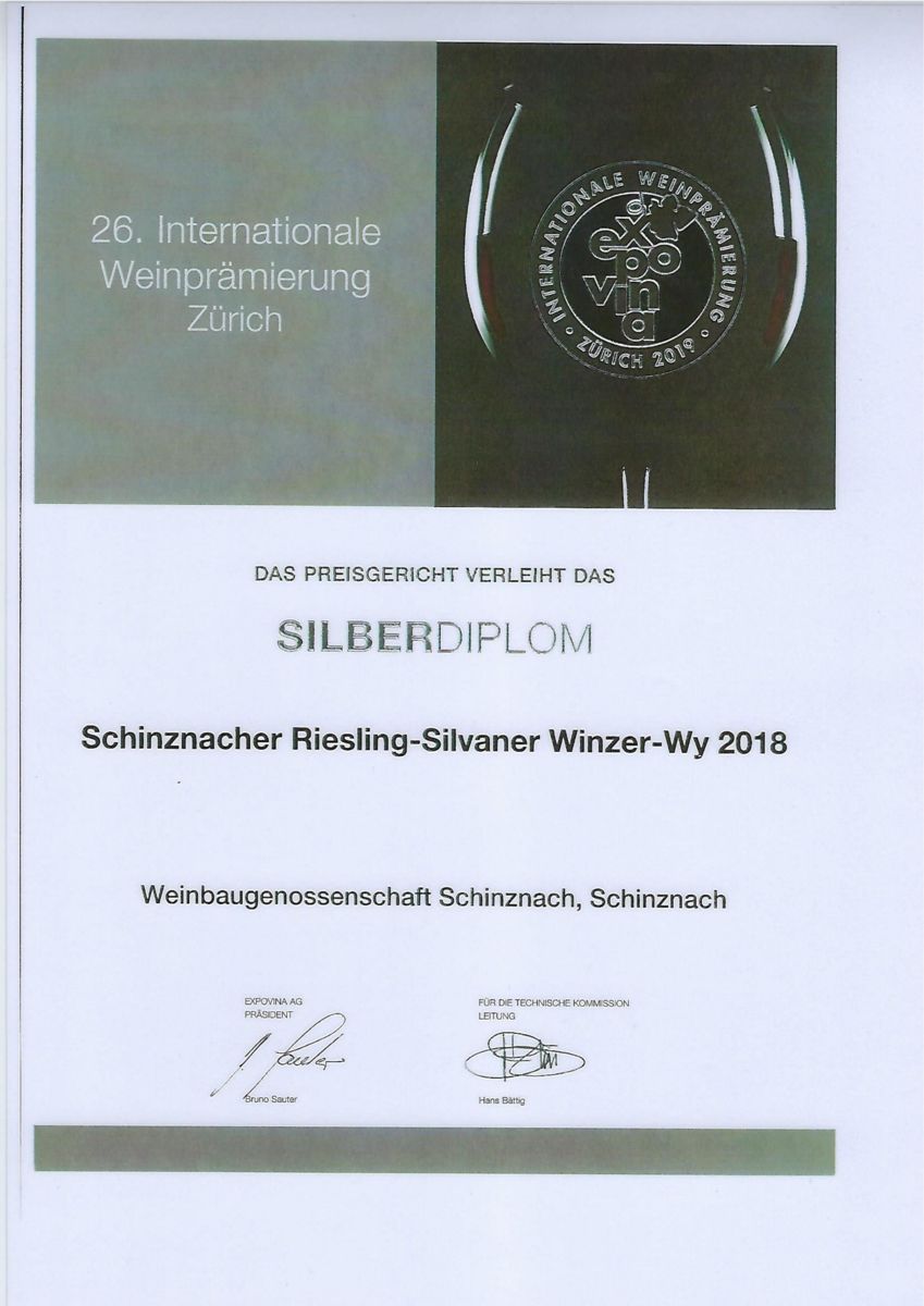 Silberdiplom Expovina, Schinznacher Riesling-Silvaner, 2011