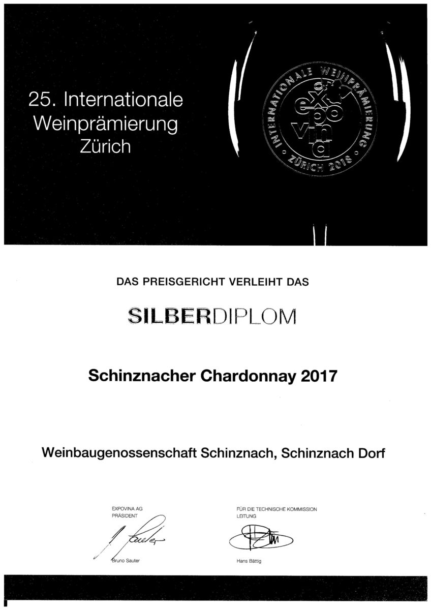 Silberdiplom Expovina, Schinznacher Chardonnay, 2017