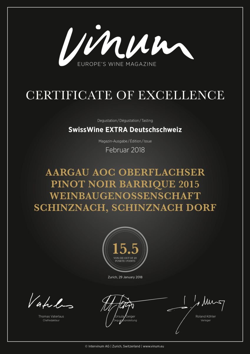 Grand Prix du Vins Suisse, Schinznacher Pinot Noir, Winzer-Wy, 2015